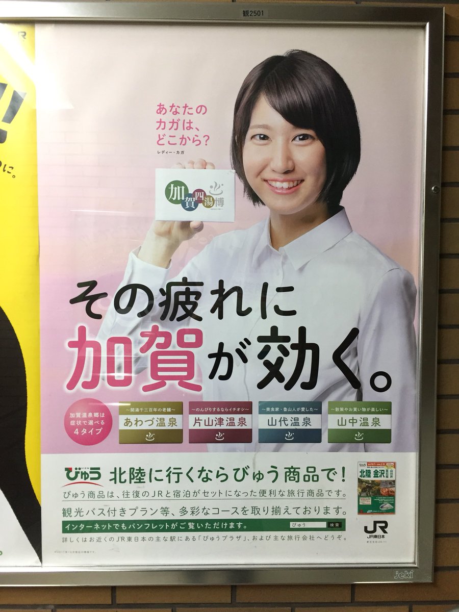 本日11/16(木)から11/22(水)まで、加賀四湯博キャンペーンポスターが首都圏のJR東日本各駅にて掲出されます!